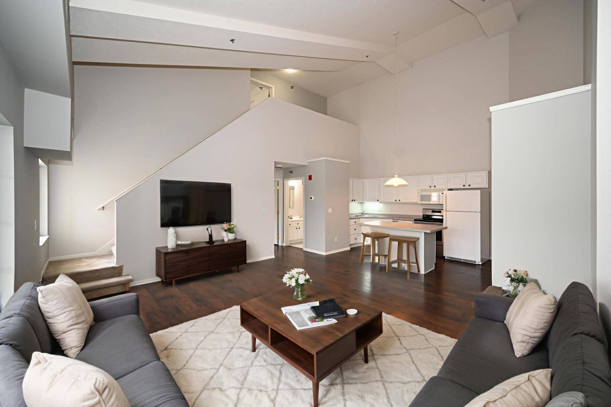 Great opportunity here for carefree living at a cost that beats renting. This 2 bedroom loft unit has alarge open feel to it, with a balcony off the living room. Featuring main floor master bedroom with walk-in closet and laundry. The 2nd bedroom is upstairs with walk-in closet and an open loft space and a private 1 car garage is included.