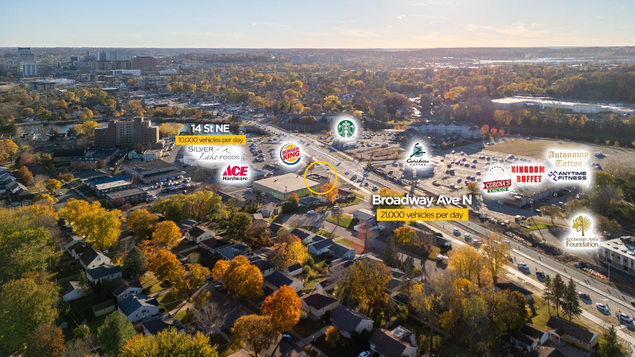 Rare high-visibility opportunity on North Broadway! This iconic 1,292 sq. ft. standalone commercial building is now white-boxed and ready for your custom build-out. Perfectly positioned on a high-traffic corridor with over 21,000 cars passing daily, this location offers unparalleled brand exposure for retail, professional office, or service-based businesses. The property features a prominent pylon sign for maximum street-level marketing and convenient front-door parking for clients and staff. Located just north of Downtown Rochester and the Mayo Clinic district, this site combines the autonomy of a free-standing building with the accessibility of a central urban hub. Skip the demolition and start fresh in a clean, open space designed to bring your business vision to life today!